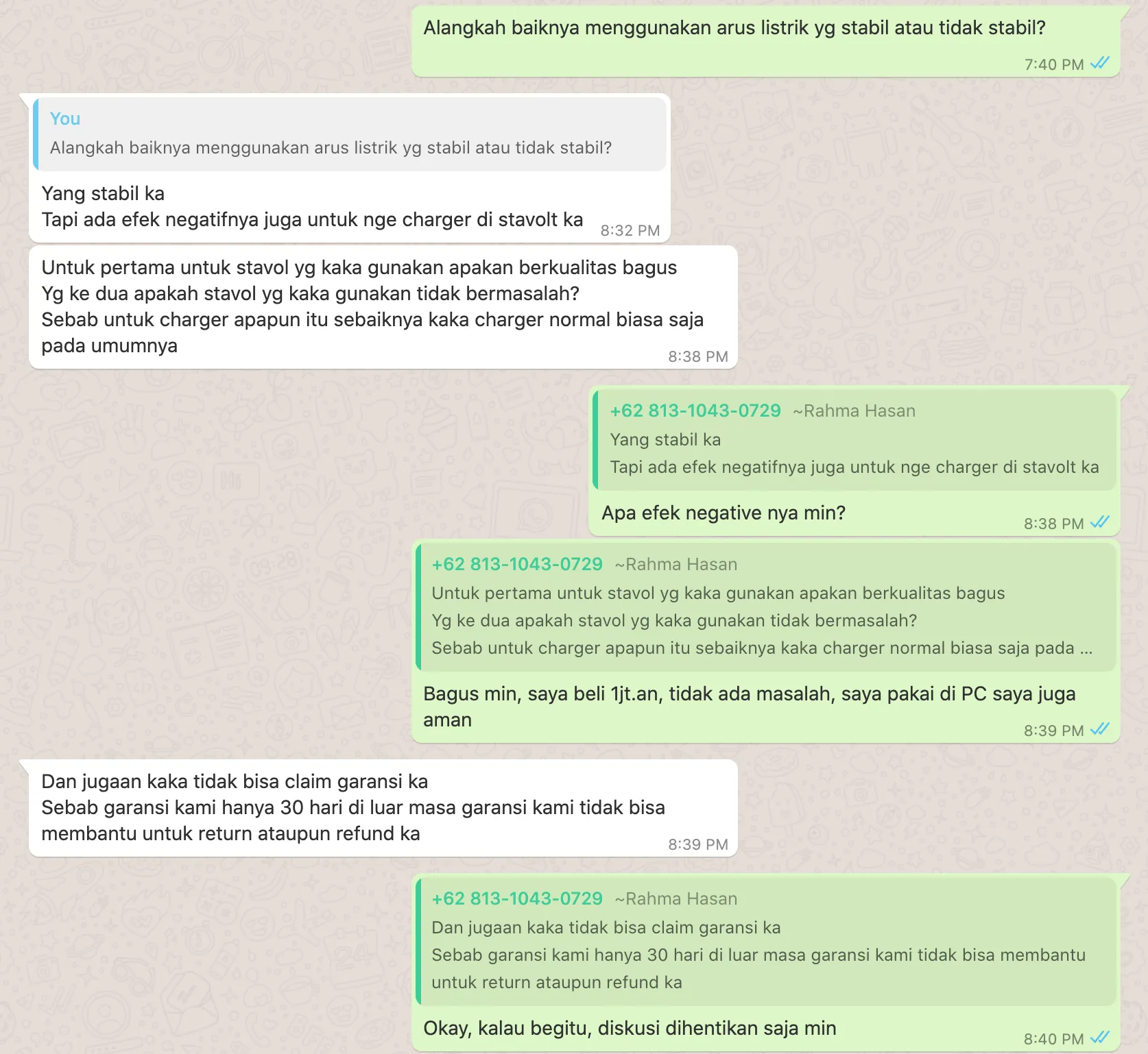 Intinya tidak ada solusi yang dapat diberikan oleh iColor guys, seolah iColor menyalahkan stavolt yang saya gunakan. Hal ini sebagai pembelajaran untuk diri saya pribadi, agar lebih berhati-hati dalam membeli peripheral untuk Macbook.